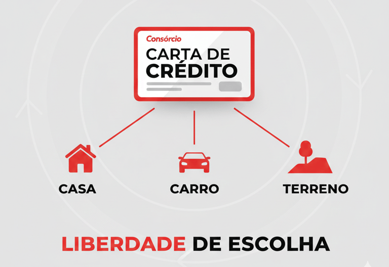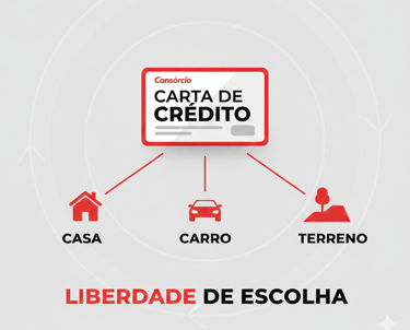 A carta de crédito pode ser usada para diferentes finalidades dentro da categoria (ex.: veículo novo ou usado, imóvel pronto, em construção, terreno).